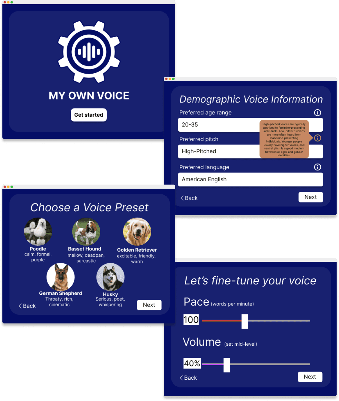 The Challenge: Designing a customization interface that avoids acoustic terminology (pitch, tone) or rigid social binaries (gender, age) that may be alienating or conceptually abstract to the target user.